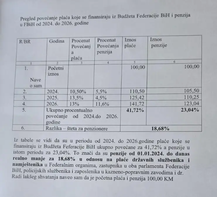 Dodaje kako su radi lakšeg shvatanja naveli da su početna plaća i penzija 100 KM.