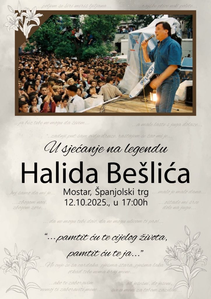 U čast Halida Bešlića, u nedjelju, 12. oktobra, građani širom Bosne i Hercegovine, regije i svijeta okupit će se kako bi pjesmom odali počast neponovljivoj legendi bosanskohercegovačke muzičke scene.
