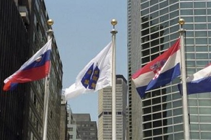 Zastava Bosne i Hercegovine pred sjedištem UN-a na East Riveru u New Yorku podignuta je 22. maja 1992. godine. Ovim činom i simbolično je označen prijem Bosne i Hercegovinu u najveću svjetsku organizaciju Ujedinjene Nacije.