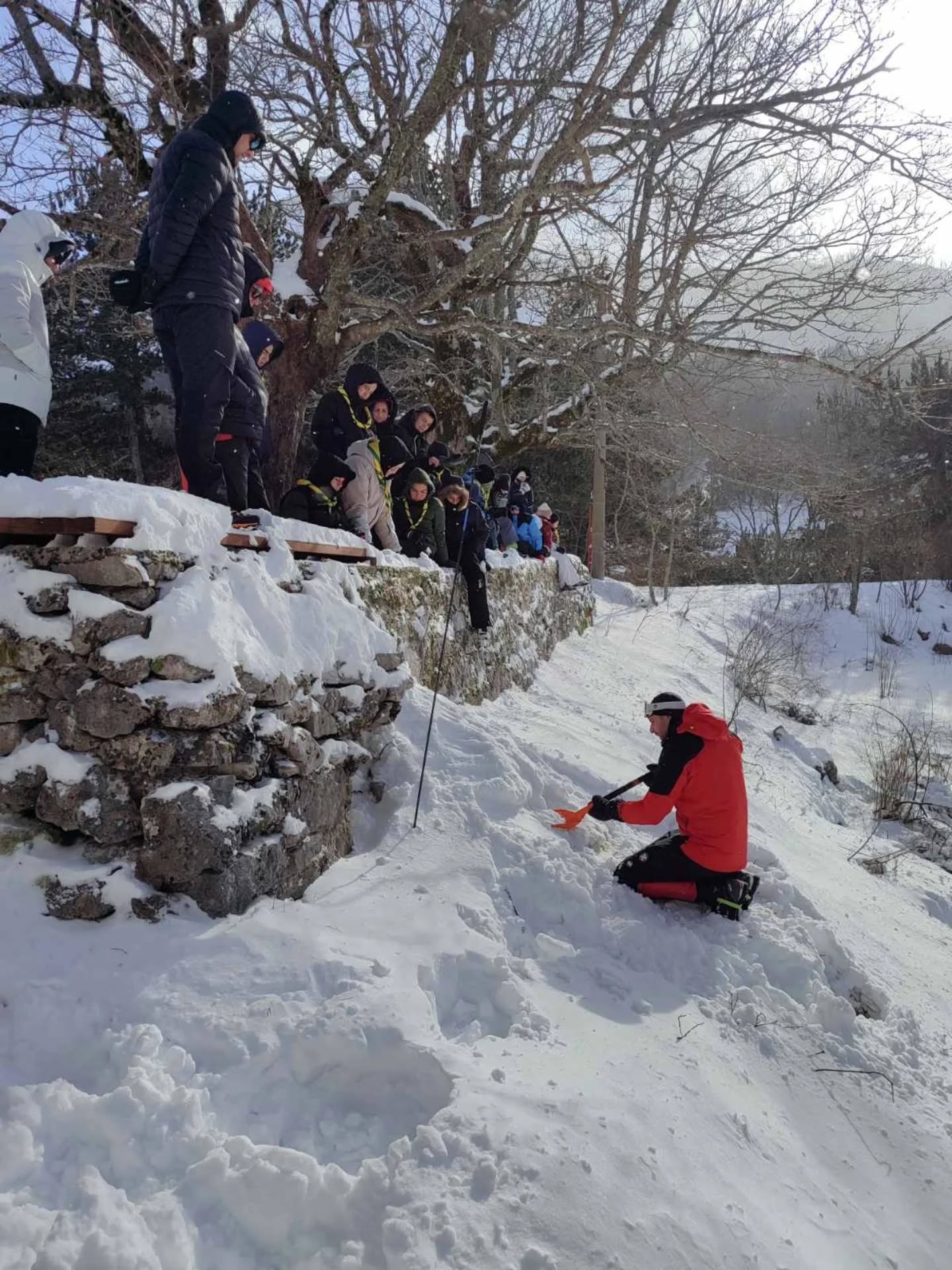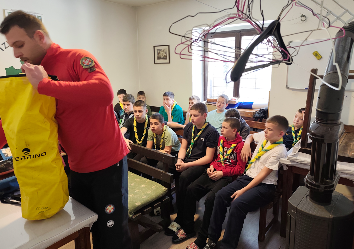 Pripadnici Stanice GSS Mostar održali su edukativno predavanje tokom kojeg su mladi izviđači upoznati s osnovama sigurnog kretanja u zimskim uslovima, neophodnom planinarskom i alpinističkom opremom, pravilnom upotrebom dereza, cepina i gamaša, kao i osnovama potrage za nestalim osobama u slučaju lavine. Posebnu pažnju izazvala je praktična demonstracija kopanja tzv. vučje jame u snijegu, kao jednog od oblika zimskog skloništa.