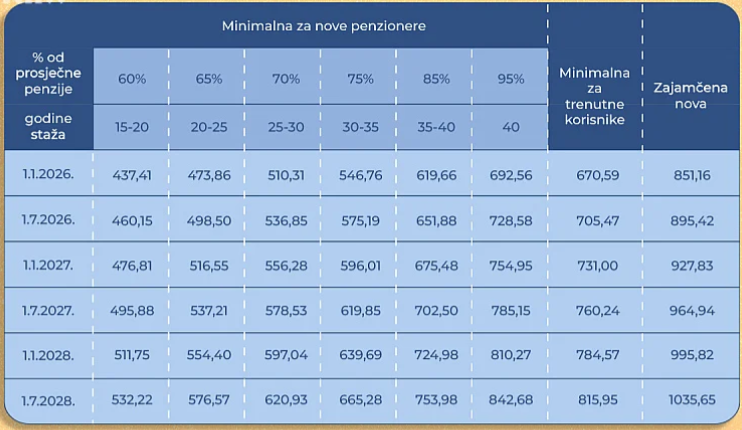 U obrazloženju najnovijih izmjena Zakona o PIO navodi se da novi obračun podrazumijeva da se “za nove korisnike prava određuju različiti iznosi najniže penzije, u zavisnosti od godina ostvarenog staža”.