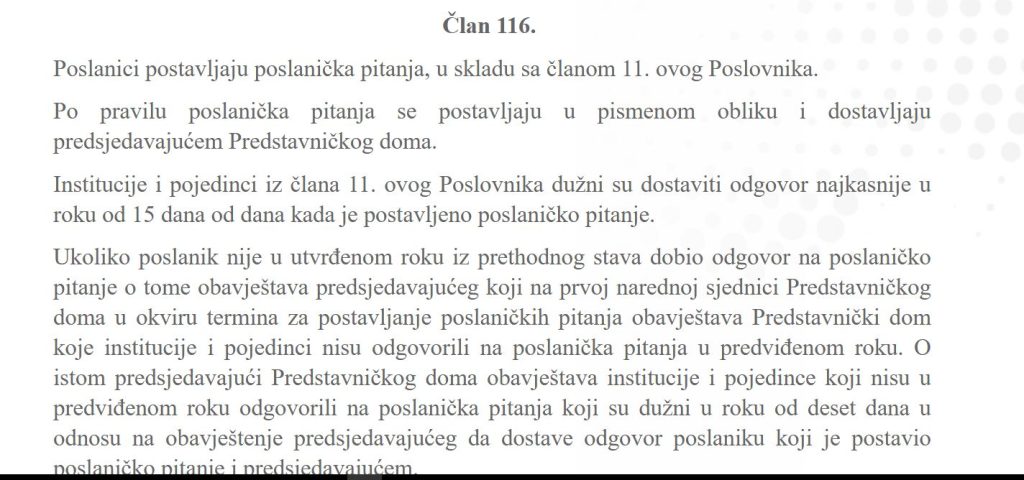 -Član 116 Poslovnika Predstavničkog doma Parlamenta FBiH,
