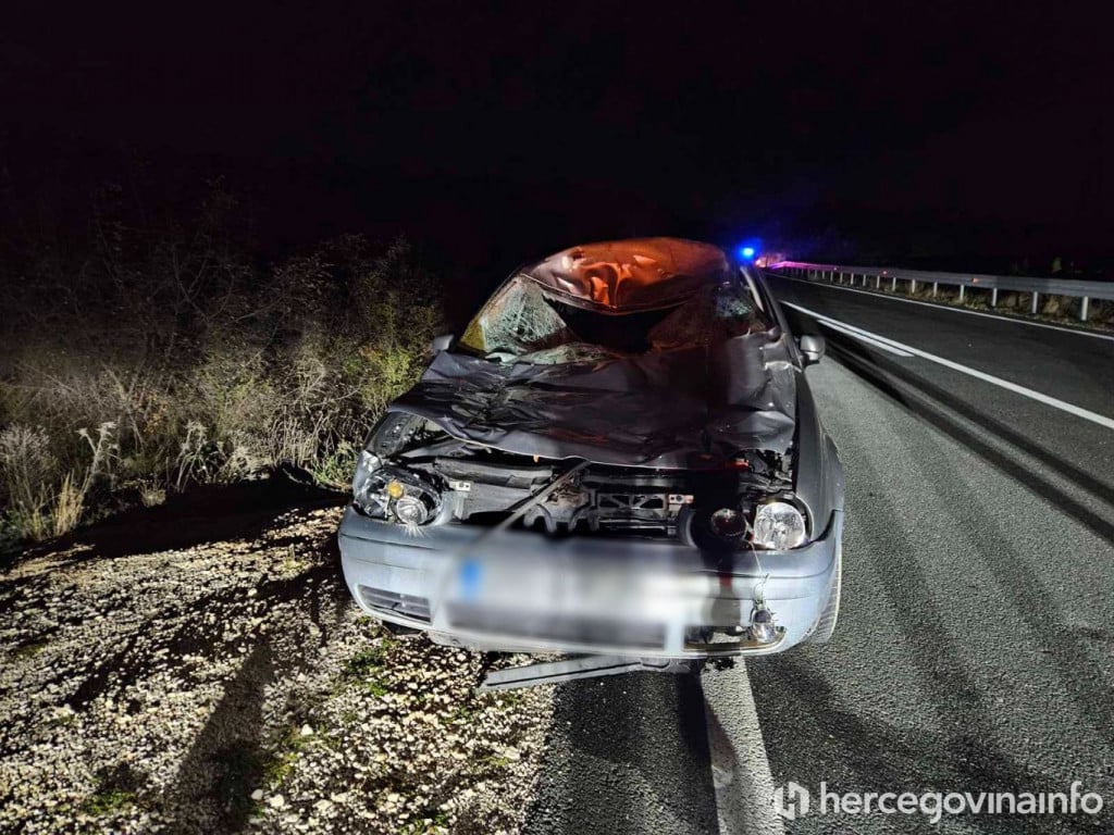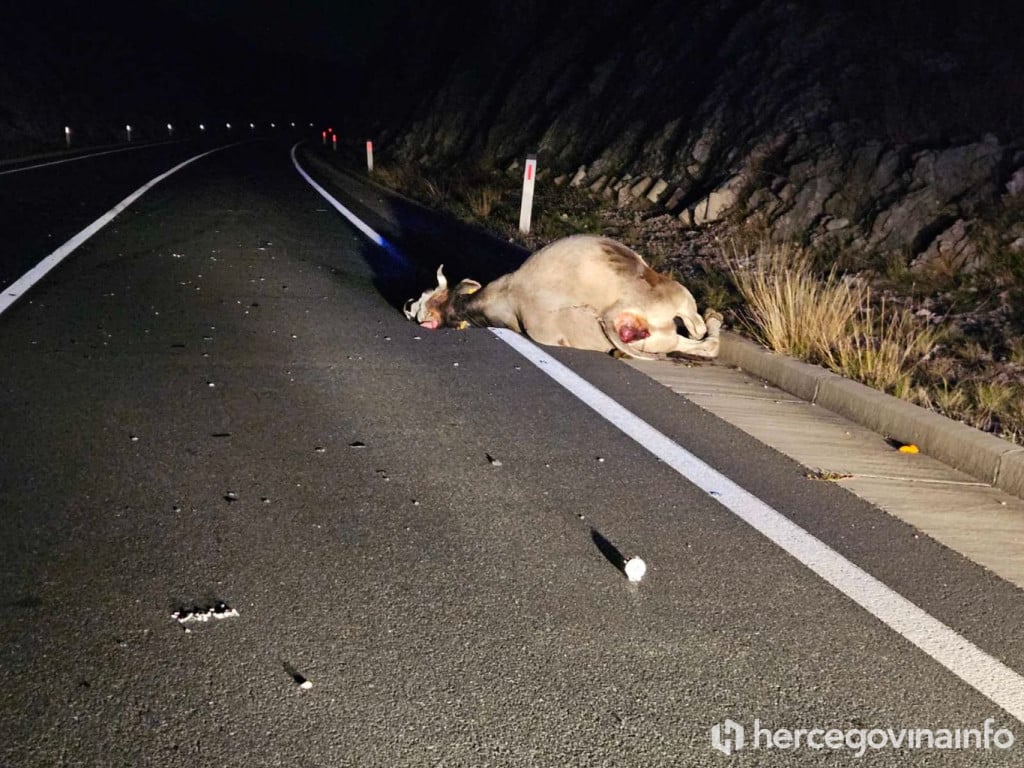 Sinoć, oko 22:35 sati, na novoj obilaznici između Miljkovića i Pologa, dogodila se saobraćajna nesreća u kojoj je automobil marke Golf udario kravu koja je prelazila cestu, piše hercegovina.info.