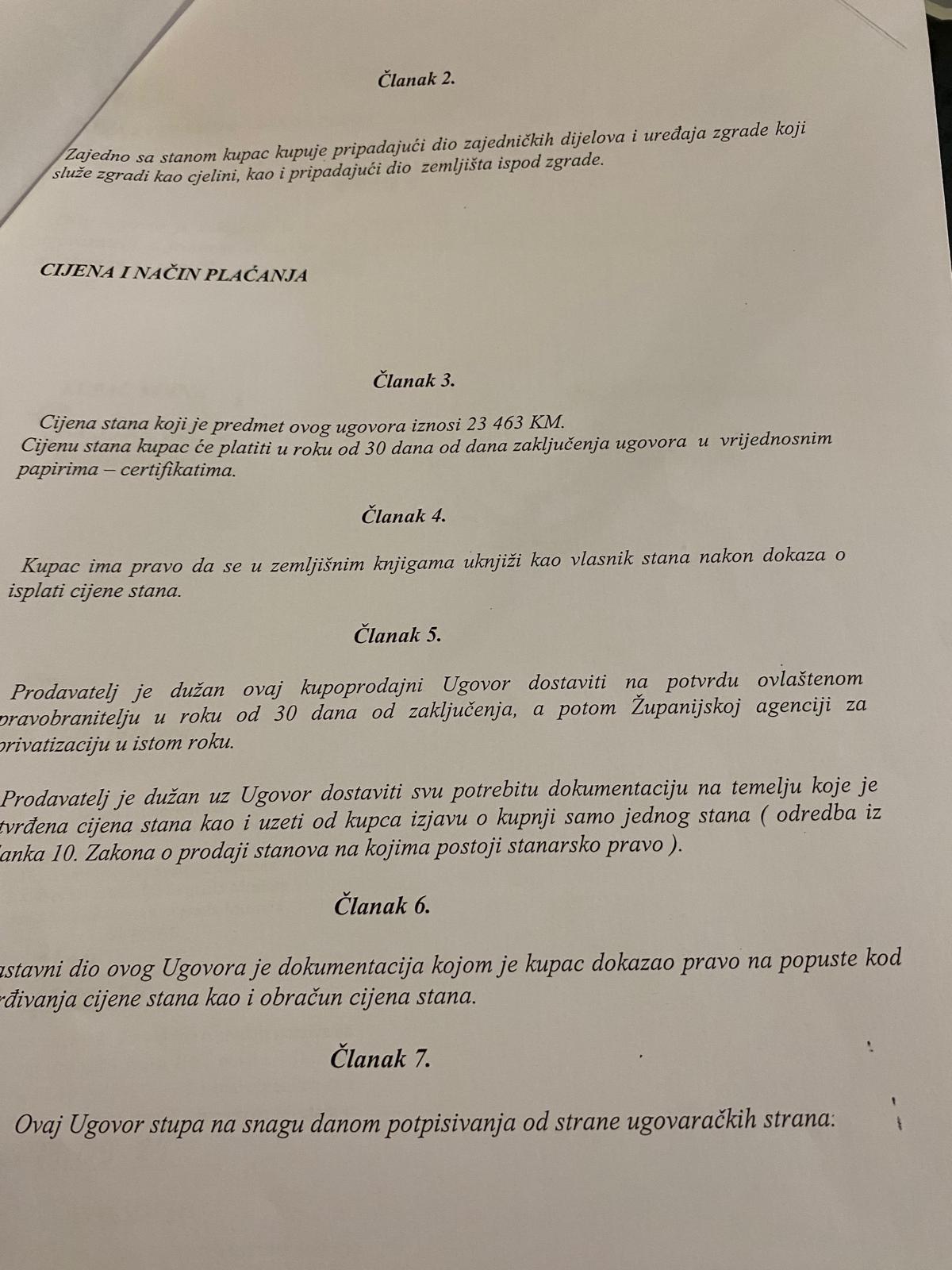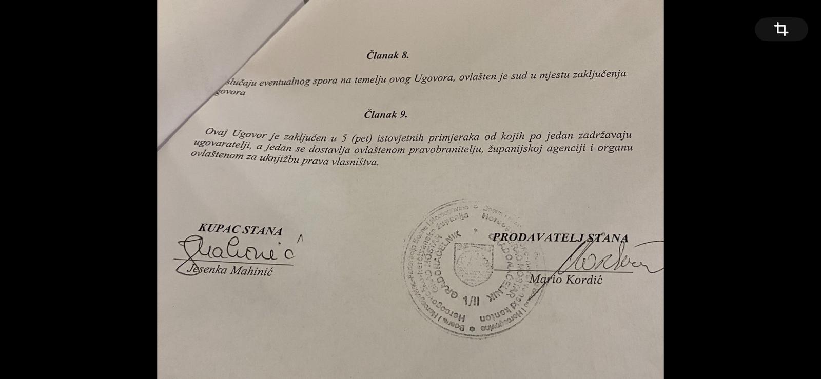Gospođa Mahinić će pomenuti stan, prema zaključenom ugovoru sa Mariom Kordićem platiti 23.463 KM ili 321 KM po kvadratnom metru, naravno – u certifikatima.