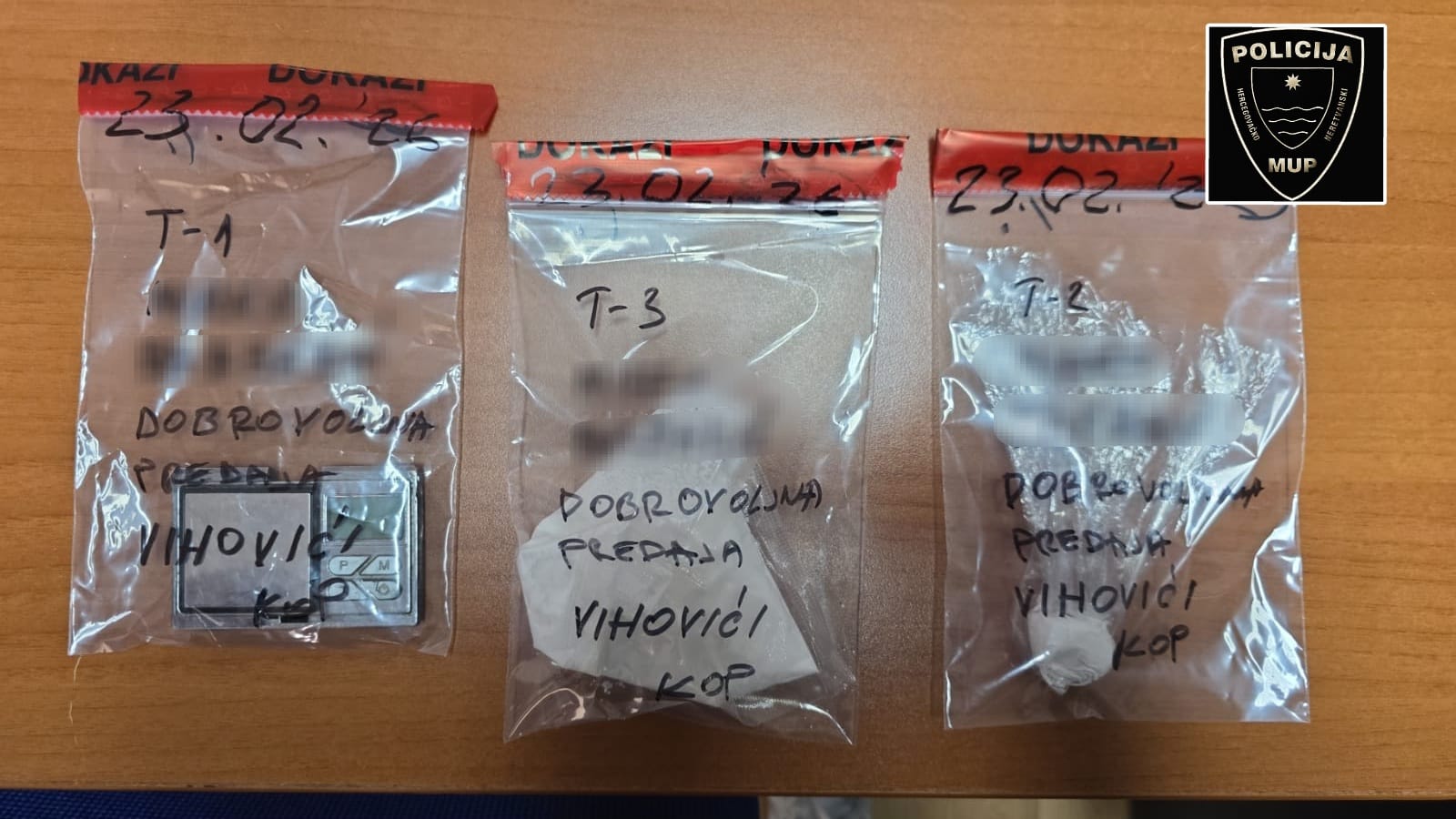 Kako je saopćeno iz MUP-a HNK, 23. februara 2026. godine slobode je lišen M.B. (1983.). Prilikom legitimisanja, osumnjičeni je policijskim službenicima dobrovoljno predao jednu digitalnu vagu za precizno mjerenje, kao i dvije providne PVC kesice s neutvrđenom količinom bijele praškaste materije koja svojim izgledom asocira na opojnu drogu amfetamin.