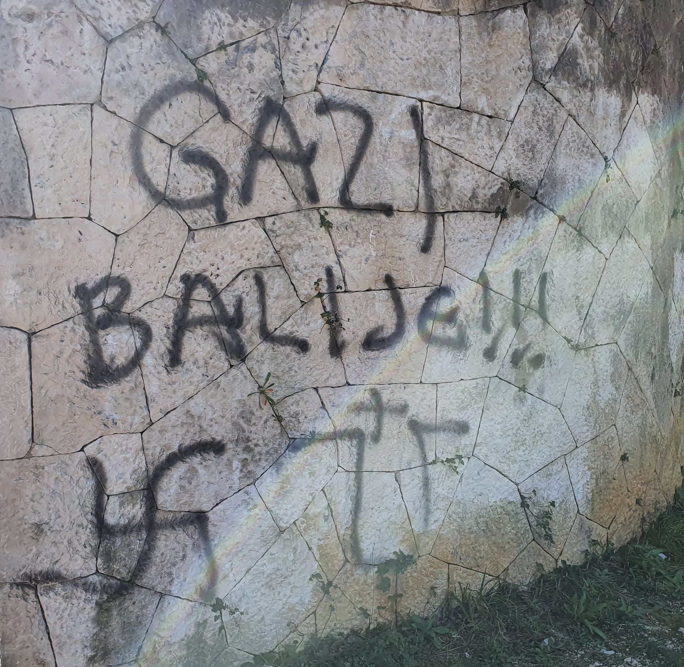 “Najvjerovatnije tokom protekle noći, uoči obilježavanja Dana oslobođenja Mostara u Drugom svjetskom ratu, znajući da će antifašisti posjetiti ovo mjesto, na ulazu u spomen-kompleks iscrtano je veliko ustaško slovo „U”. Poruka je jasna – pokušaj zastrašivanja i provociranja onih koji baštine vrijednosti antifašizma.” – kaže Sanel kajan, zastupnik Demokratske fronte u Parlamentu Federacije BiH.