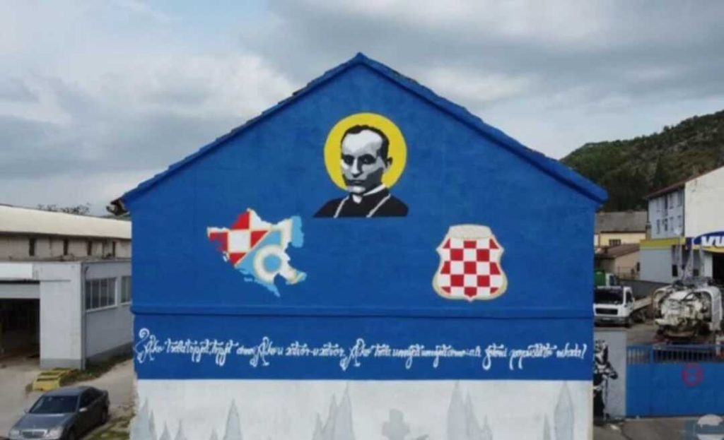 Riječ je o crtežu posvećenom Vukovaru. No, stolačkim Bošnjacima zasmetalo je što je tome pridodata i poruka “Bog i Hrvati”, kao i portret kardinala iz vremena “nezavisne države hrvatske” Alojzija Stepinca.
