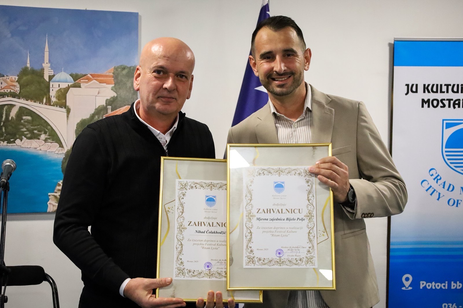 Na kraju, kroz svoje izlaganje, direktor JU Kulturni centar Mostar Sjever gdin. Elvedin Mujan prisutne je informisao o radu i postignutim rezultatima ustanove u ovoj godini, ali i planovima za naredni period. Tim povodom, direktor Mujan uručio je prigodne zahvalnice, i to sljedećim sponzorima i partnerima: Skupština i Vlada HNK, Grad Mostar i Gradsko vijeće, Turistička zajednica HNK, Osnovna škola “Bijelo Polje” Potoci, Osnovna škola Vrapčići, Osnovna škola Drežnica, Kulturno-umjetničko društvo Bijelo Polje, Udruženje žena Drežnica, Fullstage produkcija, portal Mostarski.ba, Hotel Amicus, WizardHealth, Tips d.o.o, Nastavnički fakultet UNMO, Restoran Borik Željuša, Dema&S, Hejas Tours, En-Mont, Almos Trade, ASA Central osiguranje, Aščinica Željuša, Buregdžinica Visak, Internacionalna privatna škola, Hepok Mostar, Voda Noa, Agencija “SecOne”, Motel “Snježna kuća” Rujište, Plesni studio Mo-Stars i Mjesna zajednica Bijelo Polje.