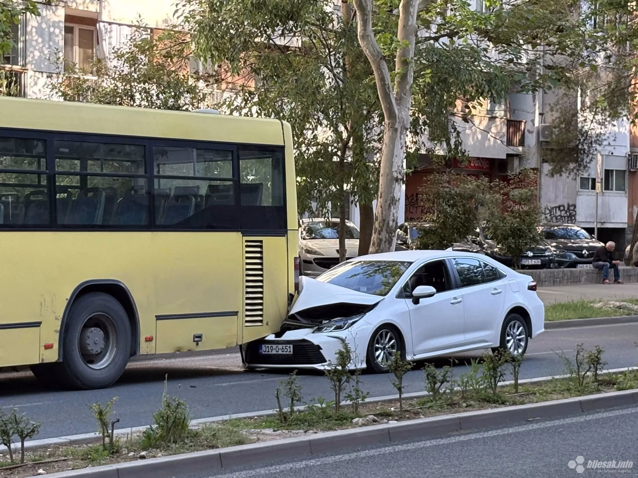 U saobraćajnoj nesreći koja se dogodila oko 17:30 sati na vrhu Avenije u Mostaru sudjelovalo je putničko vozilo marke Toyota i autobus gradskog prijevoza, piše Bljesak.info.