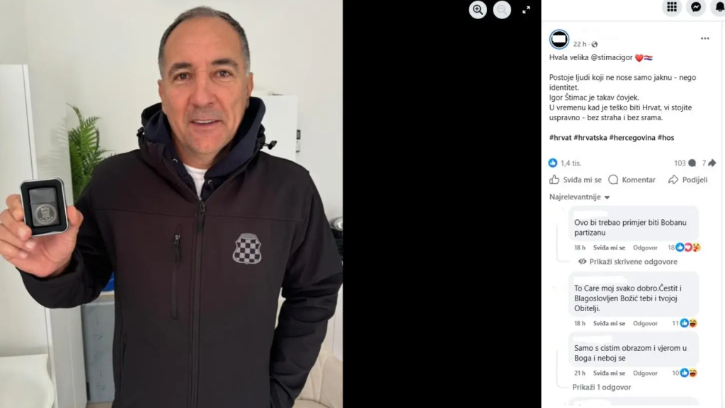 Na društvenim mrežama objavljena je fotografija na kojoj hrvatski trener pozira u jakni s obilježjem paradržave Herceg-Bosne. Uz to, u desnoj ruci je nosio predmet na kojem je pisalo “Za dom spremni”, piše Faktor.
