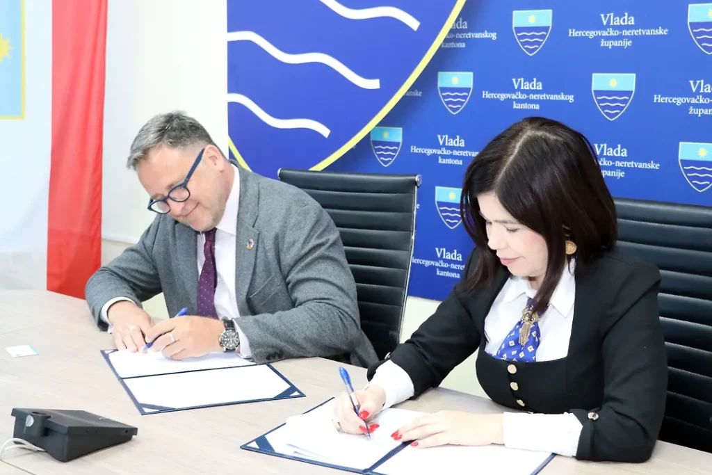 Premijerka Hercegovačko-neretvanskog kantona Marija Buhač i rezidentni predstavnik UNDP-a u BiH Renaud Meyer potpisali su danas, u zgradi Vlade, Sporazum o sufinansiranju između Razvojnog programa Ujedinjenih nacija u BiH i Vlade HNK-a, u cilju ubrzanja provođenja Plana digitalizacije javne uprave u Kantonu.